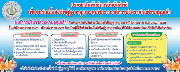 ประชาสัมพันธ์การยืนยันสิทธิ เพื่อขอรับเบี้ยยังชีพผู้สูงอายุ และคนพิการ องค์การบริหารส่วนตำบลสุมเส้า